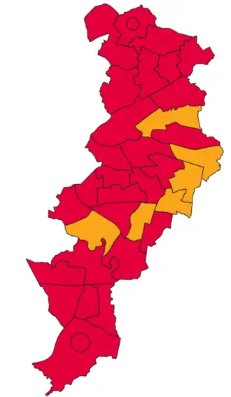 | Labour Party | 48,518 (60.1%) | 29 (82.8%) | 29 / 35