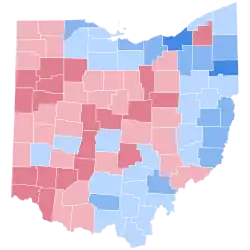 As of the 2024 presidential election, this is the last election in which the following counties voted for a Democratic presidential candidate: Columbiana, Harrison, Hocking, Jackson, Lawrence, Meigs, Perry, Pike, Scioto, Vinton, Carroll, Gallia, Guernsey, Huron, Noble, Ross, and Seneca.[2] This was the first time since 1940 that a Democrat carried Ohio in two consecutive presidential elections, and the last time a Democrat carried the state by more than 5%.