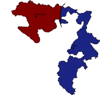 The wartime leader of the Bosnian Serbs, Radovan Karadžić, resigned amid international pressure as President of Republika Srpska.[3] In the first post-war elections held in 1996, Karadžić's Serb Democratic Party (SDS) won as expected. In the elections for the Presidency of Bosnia and Herzegovina, Momčilo Krajišnik (SDS), the previous president of the National Assembly, and during the war, the second most influential political figure in Republika Srpska, won. Gojko Kličković became Prime Minister, while Dragan Kalinić was elected President of the National Assembly.[4] At the same time, in the presidential elections, former member of the Presidency of SR of Bosnia and Herzegovina and Vice President of Republika Srpska, Biljana Plavšić, became the first female leader of any Serb entity in history. She soon came into conflict with Krajišnik and Karadžić, who, even after retiring from all state and party duties, remained very influential. The conflict was primarily on the line of formal and informal power, but also the transition from wartime to peacetime conditions. The antagonisms between the eastern and western parts of Republika Srpska and the issue of the capital, which was moved from the war location in Pale, in violation of the constitution, to Banja Luka, also came to light.