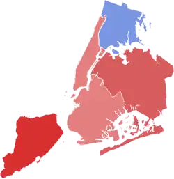 | Candidate | Party | Manhattan | The Bronx | Brooklyn | Queens | Staten Island | Total | % |