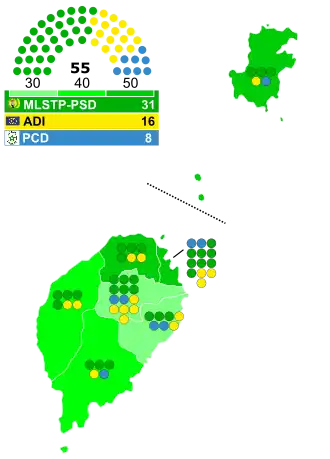 Nine political parties competed for the 55 seats at stake. These included the three represented in the outgoing parliament: the Movement for the Liberation of São Tomé and Príncipe (MLSTP-PSD), the Democratic Convergence Party (PCD) and the Independent Democratic Action (ADI). Since the previous elections in 1994, the first two groups had governed in a coalition, led since November 1996 by Prime Minister Raul Bragança Neto. ADI, for its part, supported the policies of President Trovoada.