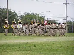 The 1st Cavalry Division Band during an Operation Iraqi Freedom 2 Color Uncasing Ceremony at Fort Hood, Texas in 2005.