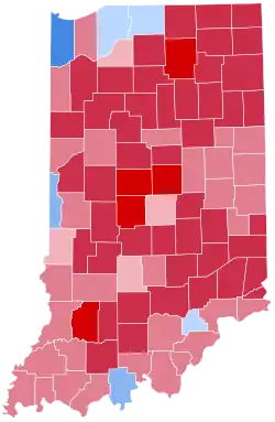 | Vanderburgh | 35,846 | 54.13% | 29,222 | 44.13% | 1,153 | 1.74% | 6,624 | 10.00% | 66,221 |