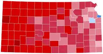 | Sedgwick | 93,724 | 57.35% | 62,561 | 38.28% | 4,669 | 2.86% | 2,463 | 1.51% | 31,163 | 19.07% | 163,417 |