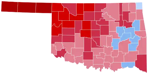 | Oklahoma | 139,078 | 62.34% | 81,590 | 36.57% | 2,443 | 1.09% | 57,488 | 25.77% | 223,111 |