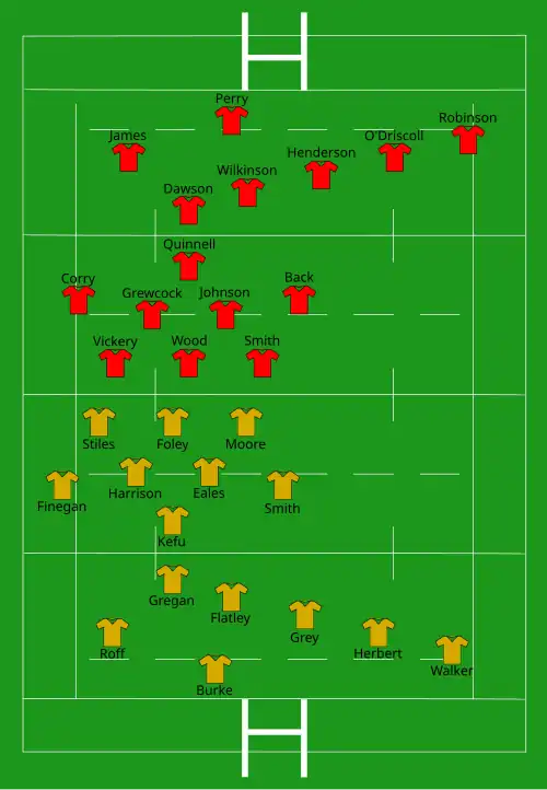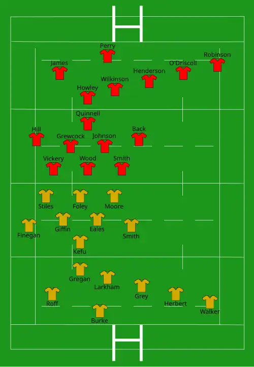 | Try: Roff (2) Burke Con: Burke Pen: Burke (6) | Report | Try: Back Pen: Wilkinson (3) |