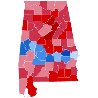 | Tuscaloosa | 42,877 | 61.40% | 26,447 | 37.87% | 506 | 0.73% | 16,430 | 23.53% | 69,830 |