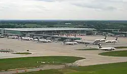 The main terminal building and satellite building three at London Stansted Airport