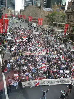 Under international humanitarian law, warring parties are obliged to distinguish between combatants and civilians, ensure that attacks on legitimate military targets are proportional, and guarantee that the military advantage of such attacks outweigh the possible harm done to civilians.[160] Violations of these laws are considered war crimes. Various groups and individuals accused both Israel and Hezbollah of violations of these laws during the conflict, and warned of possible war crimes.[161] These allegations included intentional attacks on civilian populations or infrastructure, disproportionate or indiscriminate attacks, the use of human shields, and the use of prohibited weapons. No formal charges have been filed against either group.[162]