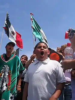 In 2006–2007, millions of people participated in protests over a proposed change to U.S. immigration policy.[1] These large scale mobilizations are widely seen as a historic turning point in Latino politics, especially Latino immigrant civic participation and political influence, as noted in a range of scholarly publications in this field.[1] The protests began in response to proposed legislation known as H.R. 4437, which would raise penalties for illegal immigration and classify illegal immigrants and anyone who helped them enter or remain in the US as felons. As part of the wider immigration debate, most of the protests not only sought a rejection of this bill, but also a comprehensive reform of the country's immigration laws that included a path to citizenship for all illegal immigrants.