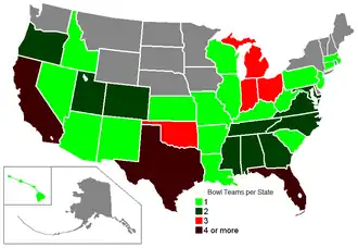 Number of bowl teams per state.