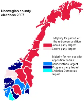 9. ^ Official county election results from the Norwegian government website