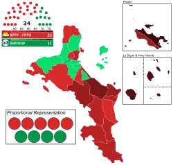 - ^ In the official results, the reported number of valid votes (54,434) was six fewer that the total of votes cast for each party (54,440).