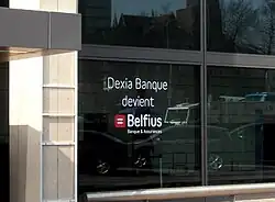 Window ad announcing the name change of Dexia Bank Belgium