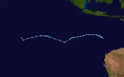 | Peak intensity | 100 km/h (65 mph) (10-min); 988 hPa (mbar) |