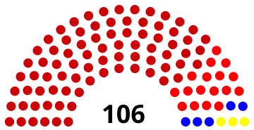 The ruling National Council for the Defense of Democracy – Forces for the Defense of Democracy won 81 of the 106 seats, while the Union for National Progress gained 17 seats. Another smaller party won five seats, while the remaining three seats are reserved for the Twa minority.[4] Pie Ntavyohanyuma was re-elected as Speaker. Mo-Mamo Karerwa was elected as first deputy Speaker and Francois Kabura as second deputy Speaker.[5]