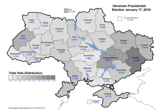 208. ^ TABLE-Ukraine's presidential election results Archived 21 January 2010 at the Wayback Machine, Kyiv Post (18 January 2010)