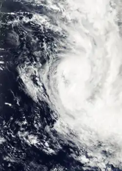 Cyclone Jasmine was a long–lived annular tropical cyclone that affected several countries, particularly Vanuatu and Tonga, over a 19‑day span. Cyclone Jasmine developed from an area of disturbed weather on February 1 in the Gulf of Carpentaria.[33] Initially, the storm moved towards the east and across the Cape York Peninsula.[34] As it moved across the South Pacific, earlier existing wind shear conditions lessened, and Jasmine began to strengthen at a faster rate. Steadily intensifying, Erica reached peak intensity on February 8 as a Category 4 equivalent on the Saffir–Simpson hurricane scale, while beginning to show annular characteristics. The next day Jasmine entered an area of vertical wind shear, which consequently weakened the cyclone and caused its eye to expand. A high-pressure area south of Jasmine later steered the weakening cyclone to the northeast on February 12.[35] Although it entered an area of warmer sea surface temperatures, Jasmine subsequently entered extratropical transition and later degenerated into an extratropical cyclone on February 16, before dissipating completely on February 19.[36]