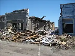 Downtown Cullman was badly damaged by the tornado, with the major damage being along a two-block area through the center of the downtown business district. Numerous well-built brick buildings and storefronts in downtown Cullman were heavily damaged or completely destroyed as the tornado briefly attained EF4 intensity.[12][1]