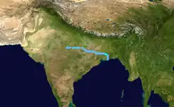 On June 16, the IMD upgraded a well marked low-pressure area (WML), located about 100 km east-southeast of Sagar Island, 150 km southeast of Kolkata and 150 km west-southwest of Khepupara (Bangladesh), to a depression, giving it the designation "BOB 02".[12] On June 16, the depression intensified into a deep depression and crossed the West Bengal coast about 100 km east of Sagar Island.[13] On the same day, at 1900 hrs UTC, the JTWC issued a Tropical Cyclone Formation Alert (TCFA).[14] The system drifted further inland and the JTWC cancelled their TCFA the next day.[15] The system weakened into a depression by June 18 and laid centered over Jharkhand.[16] The depression gradually drifted westwards and moved onto northern Madhya Pradesh by June 21.[17] and slowly dissipated into a well marked low-pressure area on June 23.[18]