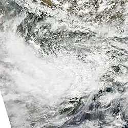 Late on September 20, an area of low pressure developed approximately 200 nautical miles (370 km; 230 mi) south of Chittagong, Bangladesh.[22] Under the influence of strong vertical wind shear and monsoonal activity in the Bay of Bengal, the system was unable to strengthen and the JTWC later reported that the system had dissipated.[23] However, on September 22, the IMD started monitoring the system as a Depression and initiated bulletins on the system, designating it BOB 03.[24] Late on that day, BOB 03 drifted northwest and made landfall over north Orissa close to Balasore.[25] After moving further northwestwards, the depression remained practically stationary over Jharkhand. By the evening of September 23, IMD reported that the depression had weakened into a well-marked low-pressure area in their final bulletin for the system, as the storm dissipated to a remnant low.[26]