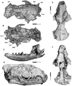 - ^ Guillermo W. Rougier; Sebastián Apesteguía & Leandro C. Gaetano (2011). "Highly specialized mammalian skulls from the Late Cretaceous of South America". Nature. 479 (7371): 98–102. Bibcode:2011Natur.479...98R. doi:10.1038/nature10591. PMID 22051679. S2CID 4380850. Supplementary information