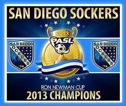 San Diego also performed well at the box office, placing second in the league (behind only Dallas) in overage home attendance.[1] The team advanced to the postseason and earned the right to play for the Ron Newman Cup in the PASL National Championship. The Sockers defeated the Turlock Express in two straight games, winning the Pacific Divisional Finals and advancing to the Semi-Finals in San Diego where they defeated the Las Vegas Legends in overtime.[13][14] The team defeated the Detroit Waza 8–6 in regulation for the league championship on March 11, 2013.