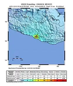 - ^ a b "PAGER – M 7.4 – Oaxaca, Mexico". United States Geological Survey (USGS). 20 March 2012. Archived from the original on 22 March 2012. Retrieved 20 March 2012.
