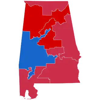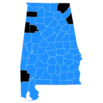 On March 13, 2012, the Alabama Democratic Party held statewide primaries to select delegates for the Democratic nomination, taking place on the same day as the Mississippi Democratic primary and the Utah Democratic caucuses. Incumbent Barack Obama ran unopposed. However, voters also had the option of voting "uncommitted" rather than supporting Obama. Of the 286,780 votes cast, 241,167 (84.09%) were for Obama and 45,613 (15.91%) were uncommitted.[3] Out of the 63 pledged delegates, 55 went to Obama and 8 were uncommitted. The floor vote at the Democratic National Convention allocated all of Alabama's 69 delegates to Obama.[4] Obama won all but 6 counties in the state.