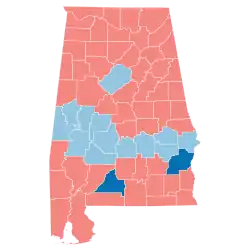 Romney won the election in Alabama with 60.55% of the vote, while Obama received 38.36%, a 22.19% margin of victory.[2] While the state swung slightly more Republican from 2008, Obama flipped two McCain counties, Barbour and Conecuh, into the Democratic column, thereby making it the last time either county voted for a Democratic presidential candidate as of the 2024 presidential election.