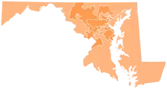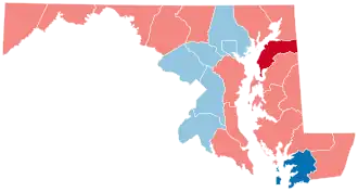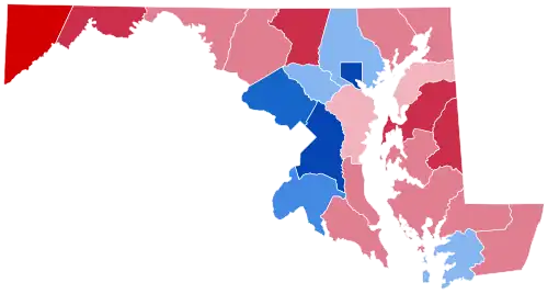 Maryland is one of six states where Obama performed better in 2012 than in 2008, with his percentage of the vote increasing from 61.92% to 61.97%. He flipped Somerset County but lost Kent County which he won in 2008 . In this election, Maryland voted 22.21% to the left of the nation at-large.[ 2]