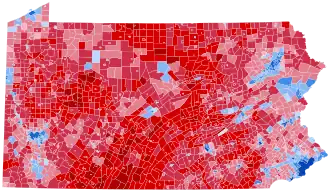 Obama received 51.97% of the vote, beating Romney's 46.59%.[5] Also on the ballot were physician Jill Stein of the Green Party and former New Mexico Governor Gary Johnson of the Libertarian Party, who received 0.37% and 0.87%, respectively.[5] Other candidates could run as write-in candidates, which received a total 0.2% of the vote. The state had been considered likely, but not certain, to go to Obama.[6] While the state had voted for a Democrat since 1992, it remained competitive, especially after Bush's loss of only 2.5% in 2004. Its competitiveness was attributable to the stark contrast between the state's diverse, urban voters in areas such as Philadelphia and Pittsburgh; and rural, blue-collar voters in the rest of the state. However, massive margins in the urban regions of the state and victories in the Philadelphia suburbs, Lehigh Valley, Scranton, and Erie delivered a considerable victory for the president. Regardless, Romney improved on John McCain's 10.32% loss in the state in 2008.[7] Just like in 2008, Pennsylvania was the most Republican of the three Rust Belt swing states (including Wisconsin and Michigan) in 2012.