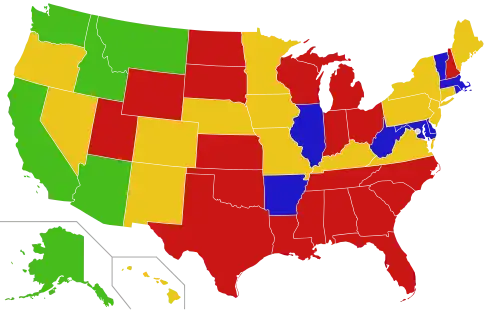 The 2012 elections were the first held after redistricting following the 2010 census. All states holding elections in 2012 did so under new maps drawn in accordance with the new census results with the exception of Montana and Pennsylvania. Montana implements its new maps four years after the census as opposed to two, whereas Pennsylvania's Supreme Court rejected the legislative maps drawn by the state's politician redistricting commission, leaving the elections to be held under the lines passed in 2001.[3][4] In a majority of states, legislative redistricting is controlled by the state legislature, often subject to gubernatorial veto. This allows for widespread gerrymandering, in which the party in power draws legislative boundaries to favor itself. Many states delegate redistricting power to an independent or bipartisan redistricting commission, often with the goal of minimizing or eliminating partisan gerrymandering.[3]