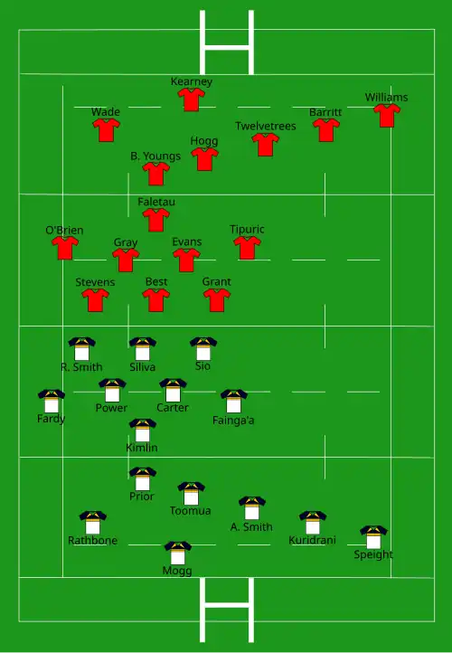 | Try: Folau (2) 12' c, 34' m Con: O'Connor (1/2) 13' Pen: O'Connor (1/3) 51' Beale (2/4) 61', 68' | Report | Try: North 25' c Cuthbert 48' c Con: Halfpenny (2/2) 27', 48' Pen: Halfpenny (3/4) 23', 31', 65' |