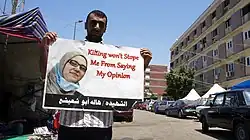 The Committee to Protect Journalists (CPJ) reported that two journalists and one student were killed while covering Egyptian unrest in the two weeks leading up to 8 July 2013.[133] According to CPJ research, before those deaths only four journalists had been killed in Egypt since 1992.[133] One of the journalists killed while documenting the 2013 clashes was 26-year-old photographer Ahmed Assem el-Senousy, also known as Ahmed Samir Assem.[133][134][135] The photographer was shot by a sniper after he recorded security forces firing on protestors.[134][135] According to media reports, el-Senousy may have captured his own death on film. A video clip posted on his Facebook page shows a sniper firing on crowds before turning toward the camera, at which point the clip abruptly ends.[134][135]