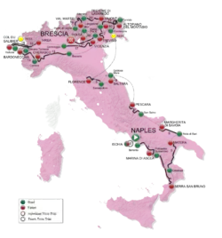 On 30 September 2012 the complete route was announced in Milan. For the first time since 2008, the first stages of the race (eight in total) took place in the south of Italy.[5] The island of Ischia also hosted a stage for the first time in 54 years.[6]