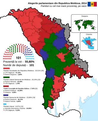 5. ^ "General information about the parliamentary elections of 2014 in Moldova / Elections 2014". E-democracy.md. Retrieved 19 February 2019.