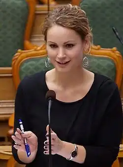 Several members of the Folketing officially asked questions regarding the case. Amongst others, in May 2014 Enhedslisten's Pernille Skipper asked the Folketing's Retsudvalg whether PET had received tip-offs in connection with the surveillance. PET's answer via the Ministry of Justice confirmed that tip-offs had been received as early as November 2011 stating that "Se og Hør apparently have access to certain information about celebrities' flights and credit card usage".[82] The then Justice Minister Karen Hækkerup commented that it was "a damn shame" that PET had dropped investigation into the case.[83]