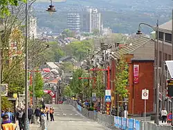 The final climb of the day came with 6.2 kilometres (3.9 miles) remaining. This was the Côte de Saint-Nicolas (1.2 kilometres (0.75 miles) at 8.6%).[17] Cycling Weekly described it as "a succession of steep corners with nothing between".[16] After the descent from the climb, the riders entered Ans, the finishing town. There was a long, straight road that started 2 kilometres (1.2 miles) from the finish line. After 500 metres (1,600 ft) of flat, the road climbed towards the finish at around 5%. With around 300 metres (980 feet) to go, there was a left-hand turn that took the riders to the finish line.[19]