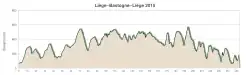 The race began in Liège, in Place Saint-Lambert outside the Prince-Bishops' Palace, with a neutral zone that took the riders out of the town to the south. The first 75 kilometres (47 miles) of the race brought the peloton south, through Aywaille to La Roche-en-Ardenne; although the roads were not flat there were no difficult or categorised climbs. Here the riders encountered the first classified climb of the day, the Côte de la Roche-en-Ardenne, a 2.8-kilometre (1.7-mile) climb at an average gradient of 6.2%. After reaching the summit, the riders continued south for another 28 kilometres (17 miles). This took them through Bertogne to Bastogne, which they reached after 107 kilometres (66 miles) of racing. This was the turning-point: from here the route turned to the north to return towards Liège. The northern leg of the race was both longer – 146 kilometres (91 miles) – and more difficult – it included nine categorised climbs.[15][16]