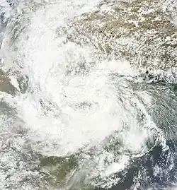 A low-pressure area formed over the Arabian Sea on October 26.[47] It slowly consolidated, prompting the IMD to classify it a depression on October 28.[48] Later the same day, the JTWC issued its Tropical Cyclone Formation Alert (TCFA) for the system, and the IMD upgraded the storm to deep depression intensity.[49][50] Further intensification ensued, causing the IMD to upgrade the system to a cyclonic storm, naming it Chapala.[51] Over the following hours, the storm intensified into a severe cyclonic storm and further into a very severe cyclonic storm.[52][53] Rapid intensification commenced and Chapala was upgraded into an extremely severe cyclonic storm on October 30.[54] On November 3, it made landfall in Yemen as a very severe cyclonic storm, making it the first tropical cyclone at hurricane intensity to make landfall in the country on record.[55] Chapala rapidly weakened over the mountainous terrain of mainland Yemen and was last noted as a low-pressure area the following day.