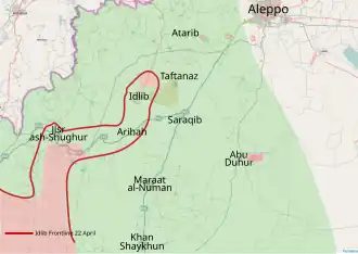 - ^ El Deeb, Sarah (25 April 2015). "Syria rebels take strategic northwestern town in Idlib province; government retaliates". U.S. News & World Report. AP. Archived from the original on 25 April 2015. Retrieved 25 April 2015.