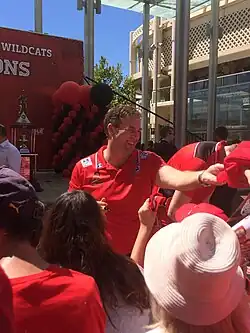 A rejuvenated Wildcats side, led by Prather, Cotton and Martin (who returned from injury on 7 January), finished their annual five-game road stretch in December and January with a three-game winning streak, lifting them from last place to second place with a 10–9 record. Their 72–68 victory over the Bullets on 9 January marked the first time in three years that the team managed to win three consecutive games on the road.[12] Coming into the final round of the regular season, the Wildcats had a 13–13 record and needed to win both of their Round 19 games to cement a place in the finals. Behind a 55-point weekend from Prather,[13] the Wildcats were successful in defeating Sydney and Melbourne, extending their NBL Finals streak to 31 seasons by sneaking into third spot.[14][15] The Cotton-Prather duo went on to lead the Wildcats to a Game 1 semi-final win over the second-seeded Taipans in Cairns, with Cotton (34 points) scoring the most points by a Wildcat in a post-season game since Shawn Redhage's 35-point effort in 2008.[16] In Game 2, Prather (24 points, 10 rebounds) and Jesse Wagstaff (20 points, five threes) led the Wildcats to a 74–66 win.[17] The series sweep earned the Wildcats a trip to their sixth NBL Grand Final in eight years and their 13th in franchise history.[18] The Wildcats were matched-up with the fourth-seeded Illawarra Hawks in the grand final, after they defeated the Adelaide 36ers—who were minor premiers—in their semi-final series. As a result, the Wildcats attained home-court advantage in the best-of-five grand final series; the NBL opted for a best-of-five series for the first time since 2009. The Wildcats went on to sweep the Hawks 3–0 to claim their eighth title, going back-to-back for the first time since 1990/1991. Bryce Cotton was named Grand Final MVP after averaging 27.7 points over the three games, including a 45-point effort in Game 3, setting the new all-time Grand Final scoring record in NBL history.[19]