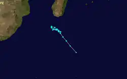 A tropical disturbance developed in the Indian Ocean on January 27.[13] The system rapidly developed, and Météo-France upgraded the system to a depression six hours later.[14] The system was short-lived; the depression would later weaken and Météo-France discontinued advisories for the system on January 28.[15]