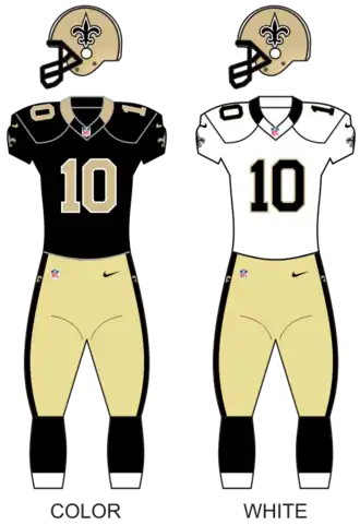 To celebrate 50 seasons in the NFL, the Saints wore special 1967–75 throwback uniforms. It was only worn for this game.