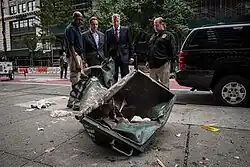 ![]() New York City Mayor Bill de Blasio and State Governor Andrew Cuomo tour the site of the Manhattan bombing | |