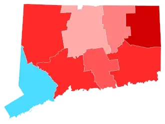 Clinton won the state by 13.64%, a smaller margin of victory than outgoing President Barack Obama's 17.33% in 2012.[2] Clinton carried six of the state's eight counties; however, Trump was the first Republican presidential candidate to win Windham County since George H. W. Bush in 1988. This is the first election since 1940 in which Connecticut did not vote the same as Michigan, something that would be seen again in 2024.