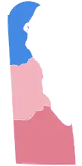 Clinton carried the state with 53.1% of the vote to Trump's 41.7%, a victory margin of 11.38%[2] Although Democrats continued their streak of winning Delaware, a state that has not gone to the Republicans in a presidential election since 1988, it swung 7.19% to the right relative to 2012, and Trump managed to flip Kent County. This was the first time since 1968 that Delaware did not vote for the same candidate as neighboring Pennsylvania. As of 2024, this is the last time the Republican nominee won Kent county with Trump failing to win the county again in both of his next presidential runs in 2020 and 2024.