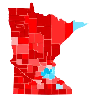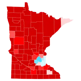 Trump's votes came from less populated, rural counties. Two counties, Morrison and Todd, gave Trump over 70% of the vote, making this the first election since 1968 where either major party candidate won a county with over 70%, with Trump also being the first Republican to do so since Dwight D. Eisenhower in 1956.