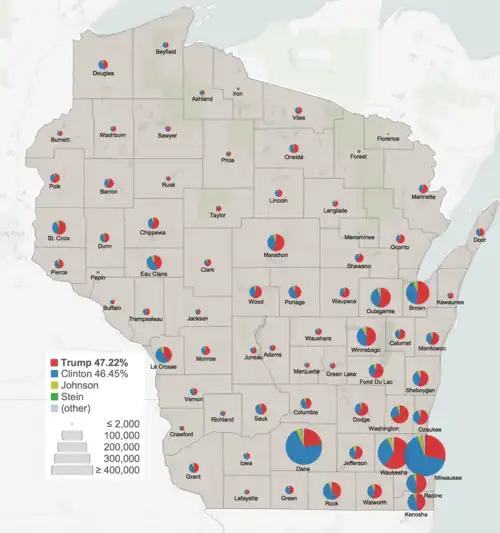- ^ a b "Wisconsin Presidential Election 2016 Results LIVE Updates". usaelections-2016.com. Archived from the original on October 19, 2016. Retrieved October 17, 2016.